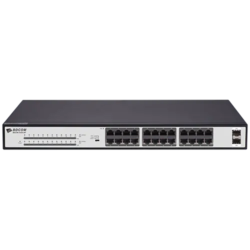 The BDCOM S1526D 24 port Unmanaged switch uses For devices like IP cameras, wireless access points, and VoIP phones. It includes 24 GE PoE ports, each of which is capable of delivering up to 30W and supports 802.3af/at standards. For fiber optic connectivity, it also includes 2 GE SFP ports. High-speed and reliable network performance is guaranteed by the BDCOM S1526D Unmanaged Switch's switching capacity of 52Gbps and MAC capacity of 4K. A built-in AC power supply for the switch operates with voltages of 100V to 220V, 50Hz to 10%. The BDCOM S1526D 24 port Unmanaged Switch is fanless, which lowers noise levels and power usage. For network expansion and security surveillance, the BDCOM S1526D is a simple and affordable option.