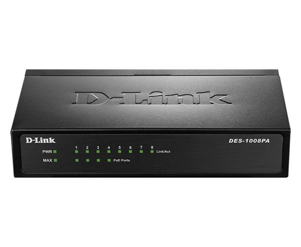 The DES-1008P 8-Port switch can convey power to up to four network devices through standard network cables using Power over Ethernet technology. And as a switch, the DES-1008P can be used to share files, music and video across your network or create a multi-player gaming environment. The device runs ultra-quiet, making it ideal for both home and small office use.