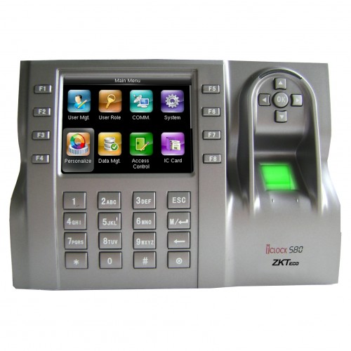 The ZKTeco iClock 580 is a Time & Attendance and access control terminal with an incorporated ZK fingerprint sensor and 3’5 TFT display. It is easy to install, and with a modern design, it is the perfect solution for all kinds of installations. The color TFT display offers users easy menu management. iClock 580 has professional firmware functions. It can connect to Time & Attendance management software by Ethernet or USB port (optionally it can work by Wifi and GPRS), and also operate on standalone mode, downloading data by USB pendrive. It can store up to 30.000 users and 8.000 templates. it can also store up to 200.000 log records without PC download. For access control, it allows time zones and groups and the relay can be connected to lock or external siren.